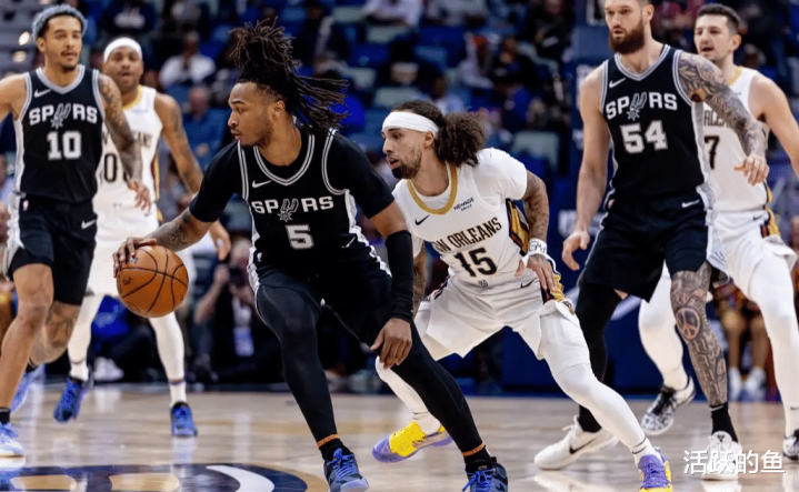 比赛伊始,马刺队仿佛被注入了强大的能量,迅速在赛场上占据主动。巴恩斯犹如一颗闪耀的明星,外线手感滚烫,三分球接连命中,那精准的投篮让鹈鹕队的防守球员防不胜防。而福克斯也不甘示弱,凭借着出色的突破能力,一次次杀入鹈鹕队的内线,如入无人之境,轻松拿分。在他们的带领下,马刺队仅用了半节时间,就打出了一波 23 - 8 的猛烈攻势,瞬间建立起了大比分领先优势,让现场的鹈鹕队球迷们惊掉了下巴,也让整个赛场都弥漫着马刺队的统治气息。